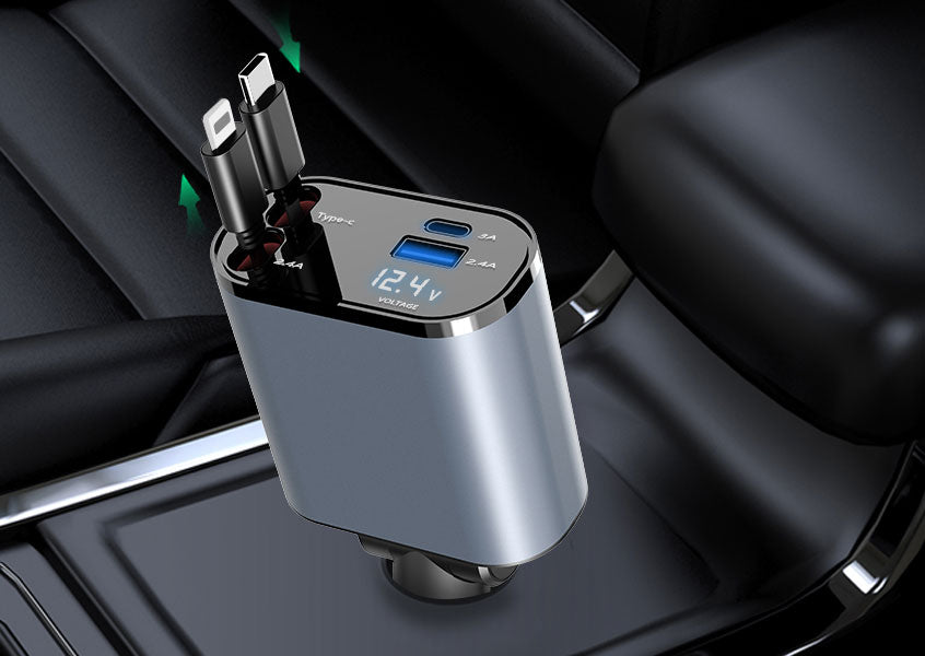 - Clutter-Free Convenience: Retractable cables keep your car organized and clean while offering easy access to power.